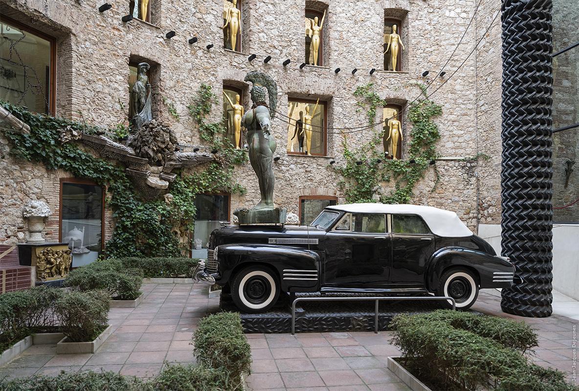 Le patio, grande cour en hémicycle à ciel ouvert, remplace l'ancien orchestre du Théâtre Municipal incendié pendant la guerre civile. Il est entouré de murs en pierre avec des mannequins dorés de style art déco, intégrés dans les anciennes loges du théâtre, qui observent les visiteurs. Au milieu, un bateau semble flotter dans les airs au-dessus de la Cadillac de Gala, un cabriolet série 62 à moteur V8 de 1938. Ce véhicule historique est appelé "Car naval.taxi pluvieux" car on peut y faire pleuvoir à l'intérieur moyennant une pièce d'un euro. La Cadillac est habitée par des mannequins de cire.