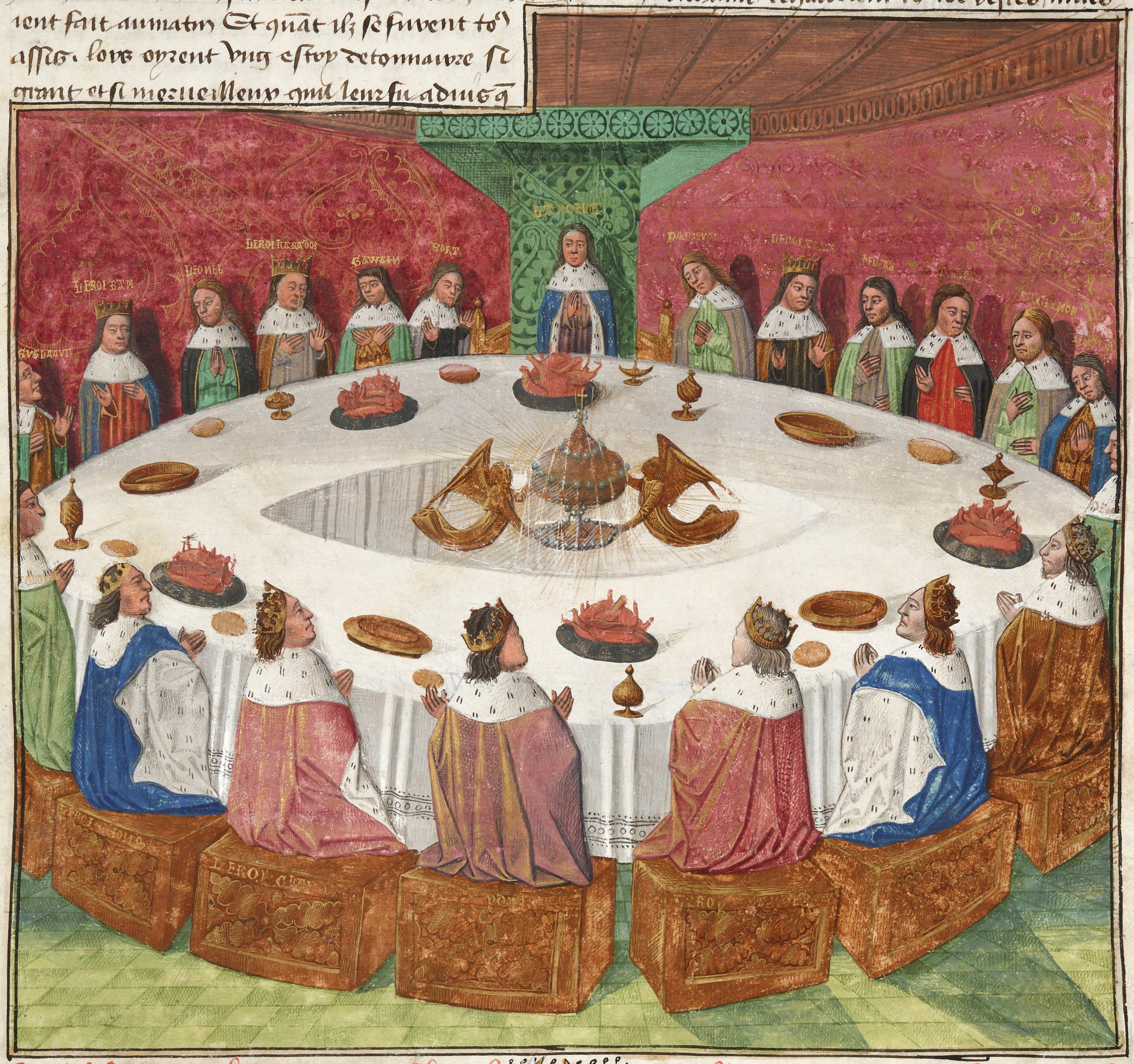 Dieu, affirme Robert de Boron vers 1200, donna l'ordre à Joseph d'Arimathie de fonder une autre Table, à la "semblance" de celle de la Cène. Le nombre des places y était limité mais non défini, et c'est là que Joseph fit asseoir les siens, après avoir séparé les bons des mauvais. Sur cette Table, était posée une coupe contenant du sang, symbolisant le Calice qui servit à recueillir, au Calvaire, le sang de Jésus-Christ. Ce Graal, devenu relique, fut remis par Joseph d'Arimathie à son beau-frère, Bron, qui transporta l'objet sacré vers l'Occident, c'est-à-dire aux Saintes-Maries-de-la-mer, ou en Petite-Bretagne, ou encore en Grande-Bretagne à Avalon. Là, il s'établit dans un château au milieu d'une vaste forêt, ou en bord de mer. Cela se passait au temps de l'évangélisation de la région, peu de temps avant l'avènement d'Arthur.