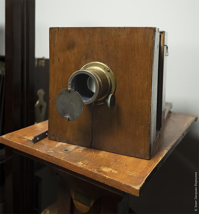 Bien avant l'invention de la photographie, la maison Charles Chevalier était renommée pour ses optiques pour la microscopie et l'astronomie. Joseph-Nicéphore Niépce s'y approvisionna ainsi que Louis-Jacques-Mandé Daguerre pour leurs travaux sur la photographie. Cette chambre à tiroir pourrait avoir servi au procédé de Daguerre sur plaque de cuivre doublée d'argent de 13 x 17 cm (demi-plaque).