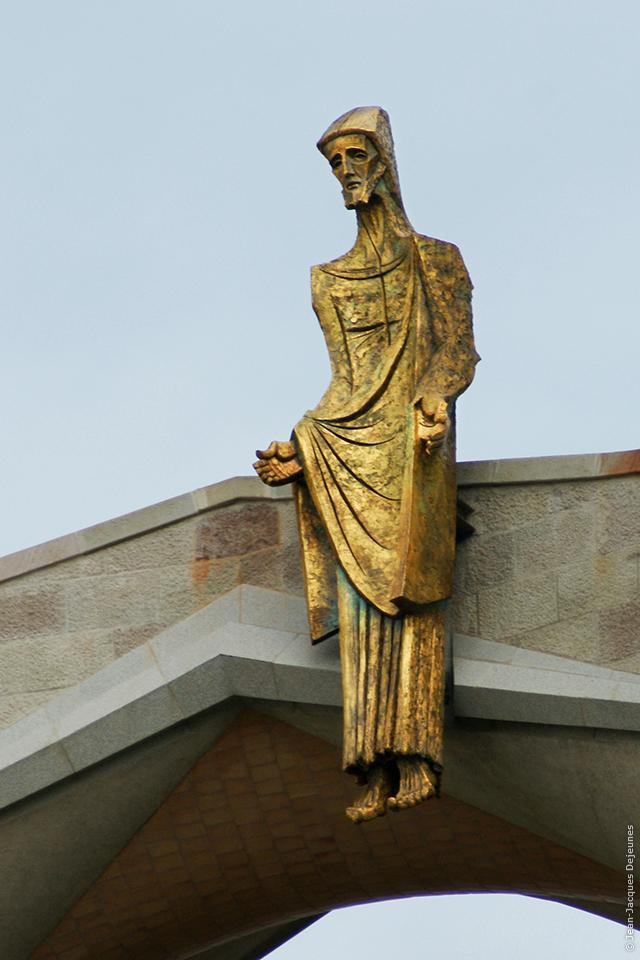 Le cycle de la Passion du Christ ressuscité se termine par l'Ascencion de Jésus au niveau de la fenêtre de la croisée du transept, entre les campaniles. La statue a été installée en 2005. C'est un bronze qui se situe à 60 mètres de hauteur. L'Ascension marque le retour de Jésus à sa gloire divine et l'achèvement de son ministère terrestre, offrant l'espoir d'une union future des croyants avec Dieu.