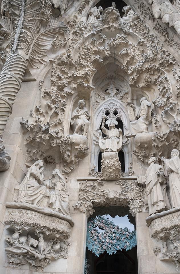 La porte de la Foi représente la Visitation, Jésus et les docteurs du Temple. Mais ce portail est riche de nombreuses autres sculptures florales ou d'animaux qui sont l'œuvre de Cales Mani et de Joan Matamala i Flotats.