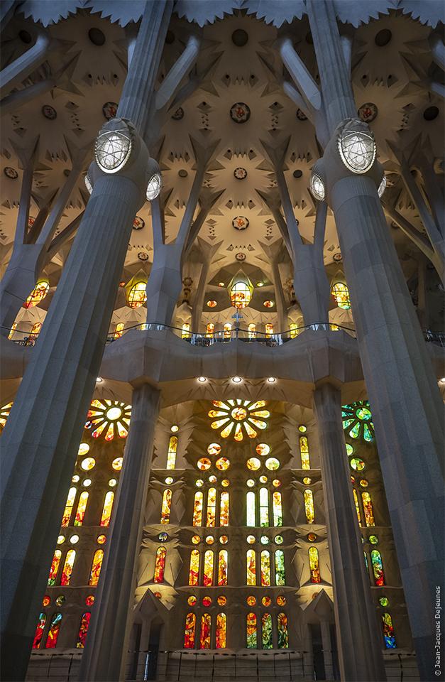 Les fenêtres qui forment les murs du temple ont été conçues par Gaudí de formes différentes afin de réaliser une progression entre le style néo-gothique des premiers ensembles et ses derniers travaux reflétant pleinement sa conception de l'architecture et de son projet final.