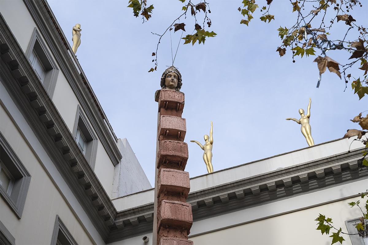 Wolf Vostell (1932-1988) est un artiste allemand, membre du mouvement Fluxus, qui, le premier, intégra un téléviseur dans une œuvre d'art. "Obélisque de la télévision" est un ensemble de télévisions, haut de 13 mètres, recouvertes de ciment qui se trouve place Gala et Salvador Dalí, à l'entrée du Théâtre-Musée.
