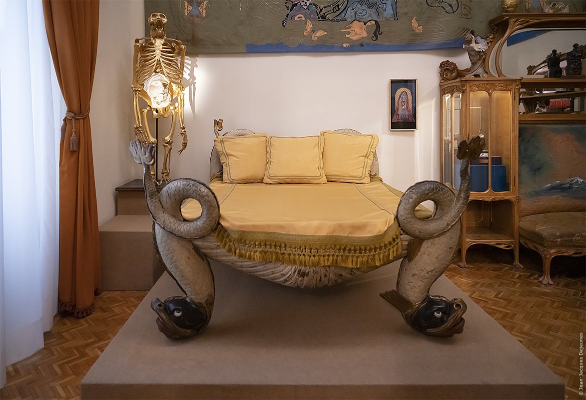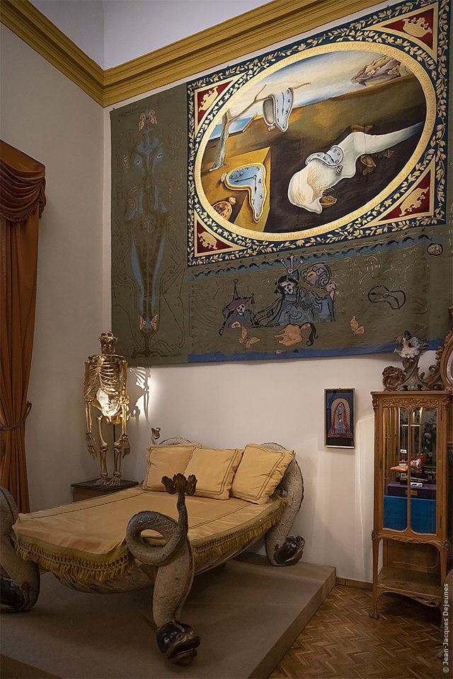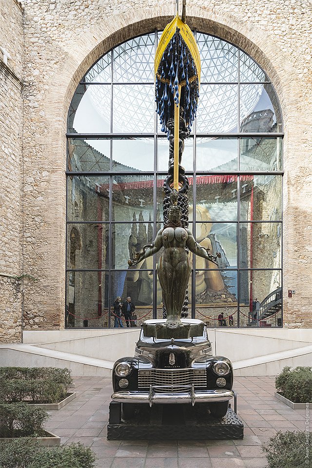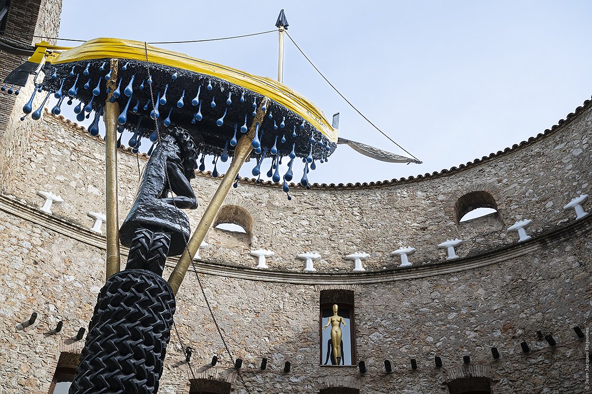À la fin de sa vie, Salvador Dalí décide de créer une œuvre monumentale à sa gloire. Il choisit comme lieu l'ancien Théâtre Municipal de Figueras situé à 100 mètres de sa maison natale et en face de l'église Saint-Pierre où il a été baptisé. Ce théâtre était en ruines depuis qu'il avait été ravagé par les flammes durant la guerre civile espagnole. Il travaillera une dizaine d'années à la restructuration du bâtiment et à l'élaboration de ce qui restera, à jamais, le plus grand objet surréaliste, inauguré en 1974 par le maître lui-même. Pour l'entrée du monument, Dalí a choisi une couleur grise et a agrémenté cette façade classique de scaphandriers et de baguettes de pain, avec des personnages aux bras levés qui accueillent chaleureusement les visiteurs, leur offrant la possibilité de pénétrer dans son monde surréaliste et envoûtant.