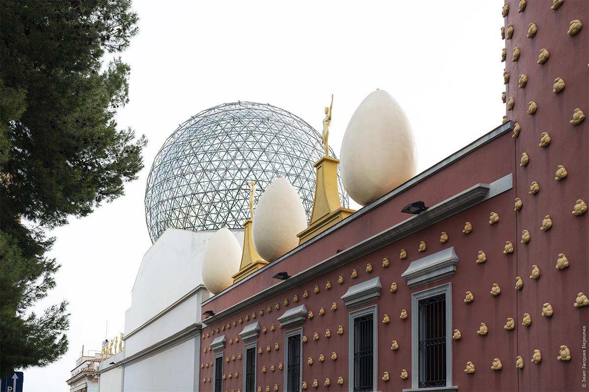 Les murs de couleur rouge brique sont recouverts de petits pains catalans jaunes. Le tout est surmonté d'œufs géants et de statues dorées qui ornent le pourtour supérieur du musée. C'est l'expression classique de toute la symbolique dalinienne de la vie et de la perpétuation de l'espèce humaine. Le grand dôme transparent, conçu par l'architecte Emilio Pérez, est devenu le symbole du musée.