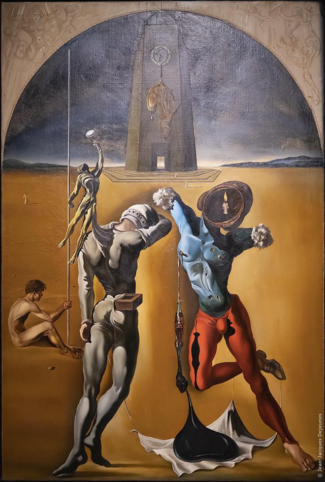 Salvador Dalí peint cette huile à Monterrey, en Californie, en 1943. Le paysage est un mélange de la plaine de l'Ampourdan, du Cap de Creus et des grands déserts américains. La peau de l'Afrique apparaît au fond, sur la tour du temps, avec l'horloge qui marque l'heure et les athlètes - joueurs de football américain -, sur fond de symbolisme vertical de la bouteille de Coca-Cola entre les deux et le téléphone noir, enkysté dans la bouteille, dont s'échappe une grande tache noire tombant sur une toile blanche que tiennent les athlètes. La tache noire a fait l'objet de différentes interprétations. L'une d'elles est qu'il s'agirait d'une représentation du problème racial américain. Cette œuvre, réalisée pendant l'étape américaine, est une anticipation des nouvelles attitudes culturelles du XXe siècle, du Pop Art en particulier.