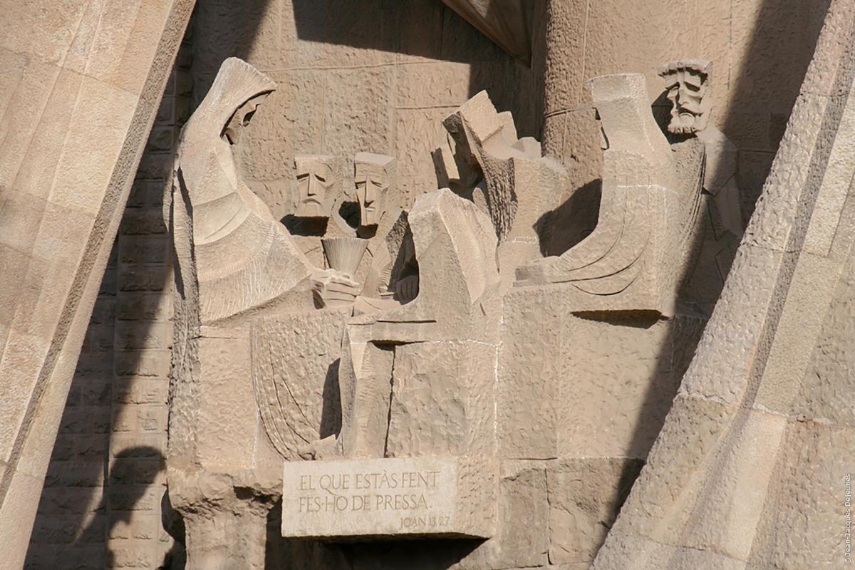 La Cène a été placée en 1994, à gauche de la façade, au premier étage. Jésus partage son dernier repas avec ses douze apôtres avant sa crucifixion. C'est au cours de ce repas qu'il institua l'Eucharistie, rompant le pain et partageant le vin, symboles de son corps et de son sang, afin que ses disciples s'en souviennent. Jésus et Judas sont assis aux extrémités. Cette représentation comprend une inscription sur la trahison imminente de Judas : "Quoi que tu fasses, fais-le vite."