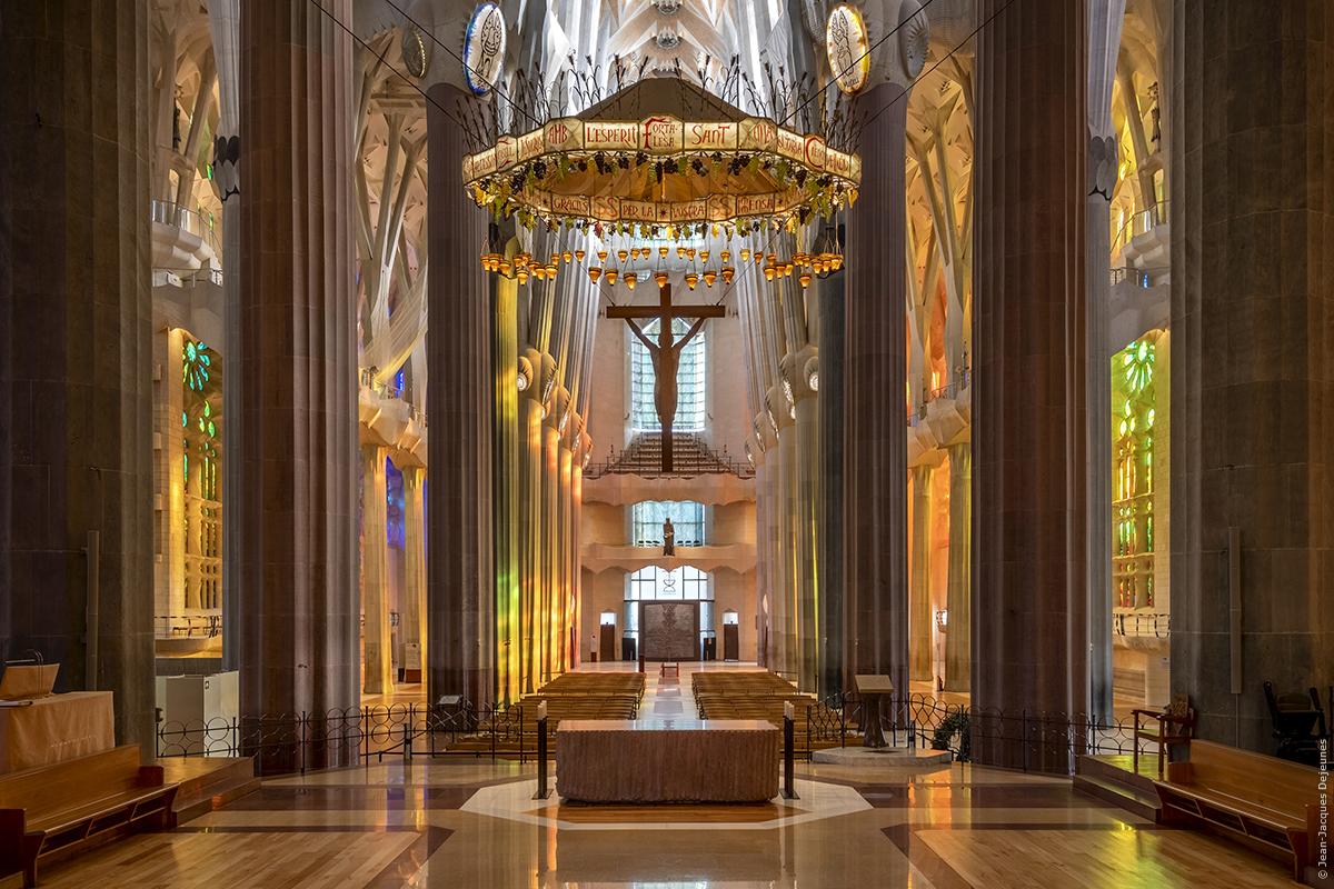 Le chœur vu du presbytère avec en face la verrière de la façade de la Gloire.