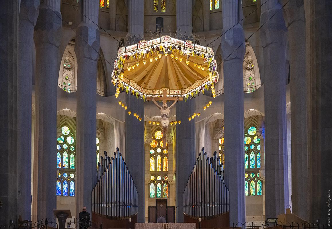Le chœur accueille le maître-autel au-dessus duquel se trouve un crucifix avec un baldaquin. La tour de Marie se trouve juste au-dessus et forme un puits de lumière qui éclaire le tout. En 2010, un orgue a été installé par le facteur d'orgue catalan Albert Blancafort de Montserrat. L'instrument possède 1 492 tuyaux.