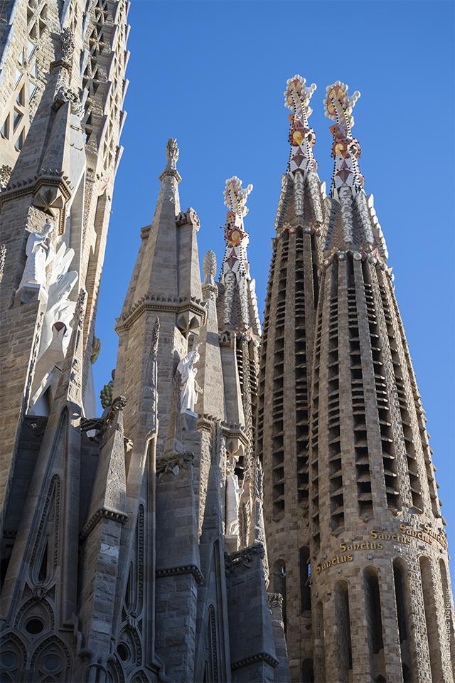 On contourne la Sagrada Família par la droite de la façade de la Nativité, où se trouve l'abside de la basilique, pour rejoindre la façade de la Passion.