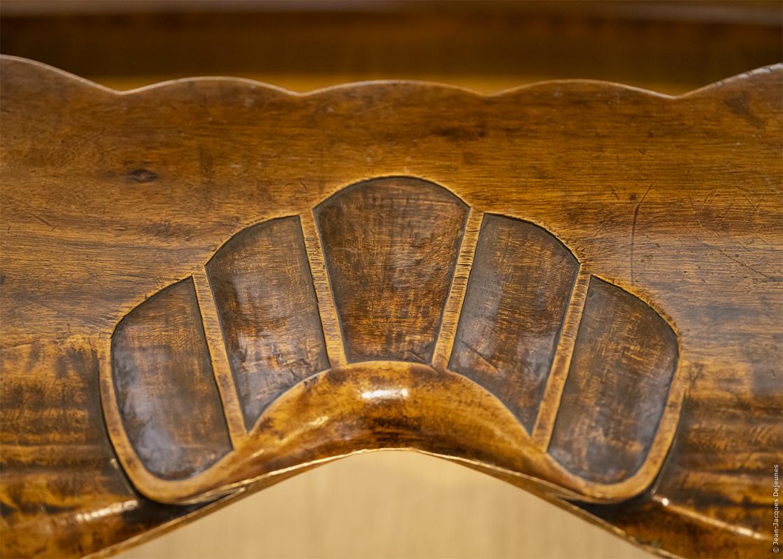 Sculpture de l'assise en chêne du banc qui se trouvait dans l'église de Santa Colonia de Cervelló. Il a été fabriqué en 1913-1914 à partir de matériaux récupérés à l'usine textile d'Eusebi Güell. Le dossier a été ajouté a posteriori.