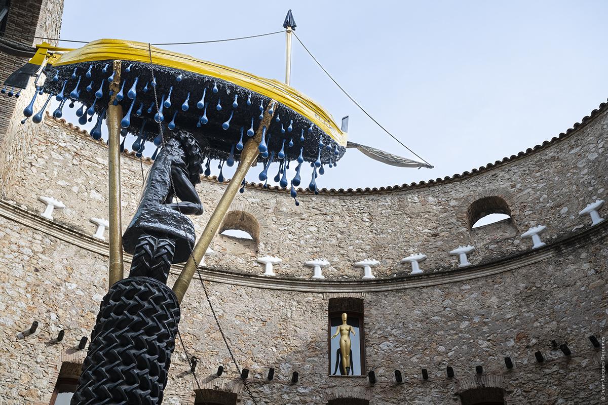 dalinisé ligoté par un pneu, soutient une barque jaune qui semble flotter à la surface de l'eau alors que nous sommes censés nous trouver dans le fond de la mer.
