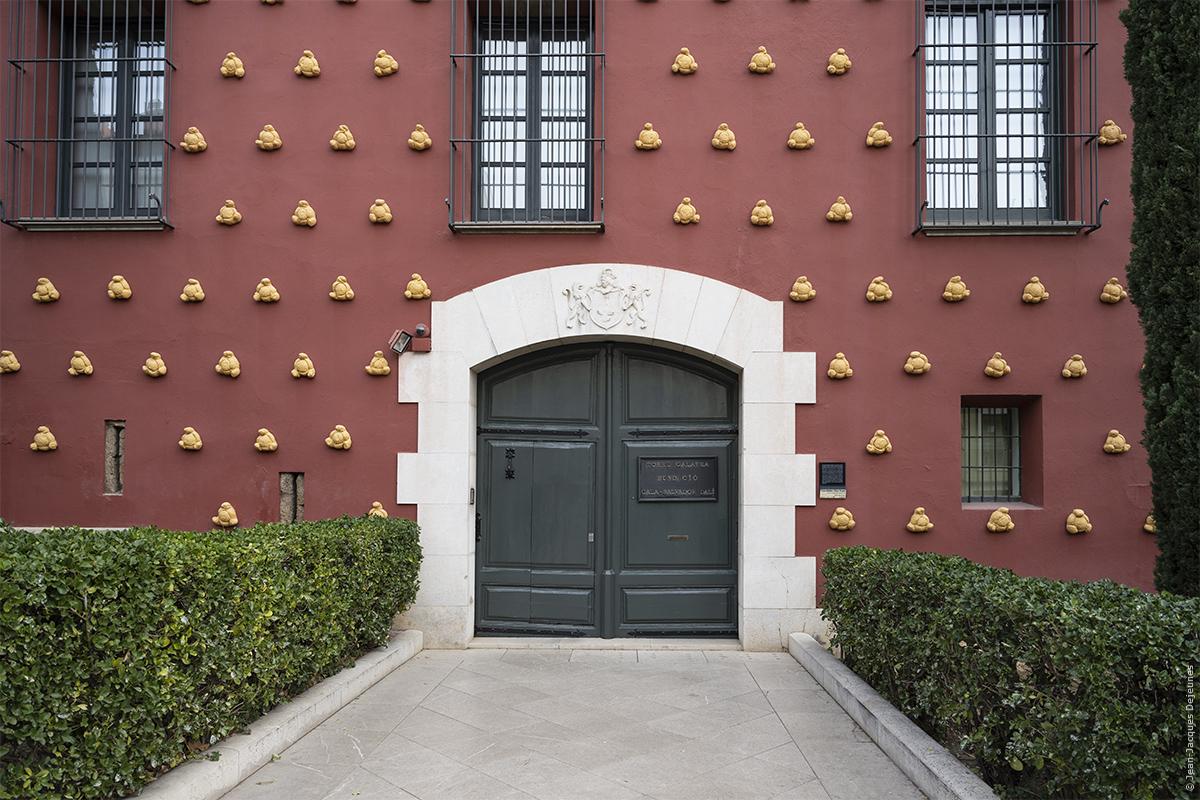 Partout, des petits pains catalans jaunes sur fond rouge brique.