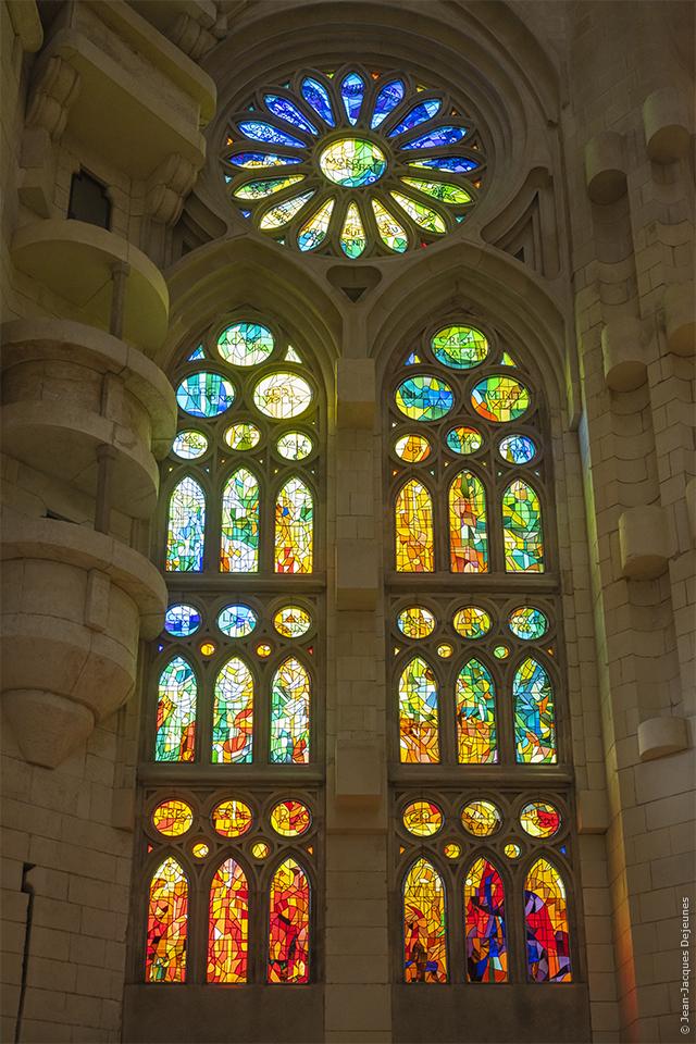 Vitraux du transept sud-ouest dédié à Marie, mère de Jésus.